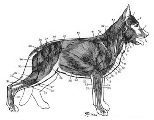 quindi "alleggerito" del mantello mettendo così in evidenza il suo sistema muscolare superficiale. Infine, ho tolto anche i muscoli ed è venuto alla luce il solo scheletro del cane. Da qui si è